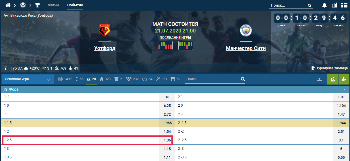 Выиграет ли ставка Фора 1 (+2.5), мы разберем на примере матча «Уотфорд» — «Манчестер Сити». Обычно наличие такой форы в букмекерской линии на футбольный матч свидетельствует о значимой разнице в уровне играющих команд.