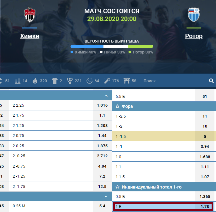 «Химки» — первая команда, именно их результативность нас и интересует. При ставке ИТ1 больше 1.0 может быть три варианта расчета: