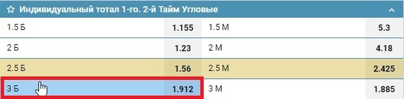 Б — сокращение от «больше» указывает на то, что ставка выиграет, когда событий больше определенного числа.