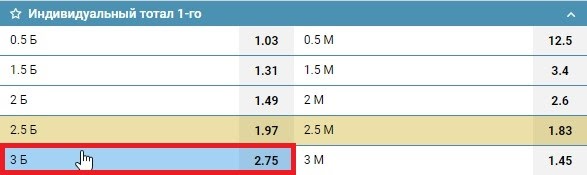 Что значит ставка ИТБ1(3) – Индивидуальный тотал 1 больше 3