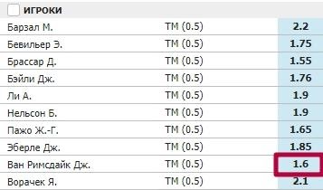 ИТ1 меньше (0.5) в футболе