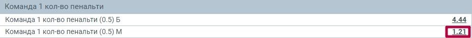 Пример. Перед нами матч чемпионата Бельгии между «Гентом» и «Брюгге». Предположим, мы поставили 2000 рублей на тотал пенальти «Гента» меньше 0.5. Коэффициент события — 1.21.