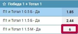 Ставка сыграет, если хозяева поля выиграют, забив ровно 1 мяч. Таким образом, фактически это пари на точный счет 1:0. Поскольку вероятность такого явления невысока, букмекеры предлагают маркет с коэффициентом 6.00.