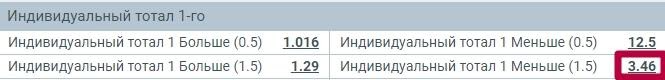 Что значит ставка ИТМ1(1.5) – Индивидуальный тотал 1 меньше 1.5