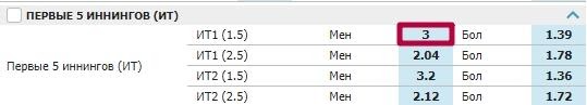 В росписи бейсбола данный маркет означает количество ранов одной команды в первые пять иннингов.