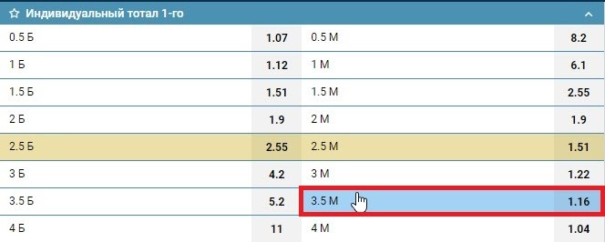 Что значит ставка ИТМ1(3.5) – Индивидуальный тотал 1 меньше 3.5