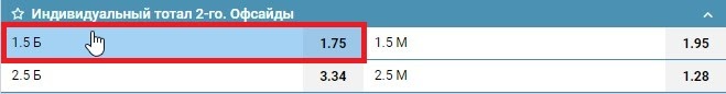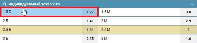 Что значит ставка ИТБ2(1.5) – Индивидуальный тотал 2 больше 1.5