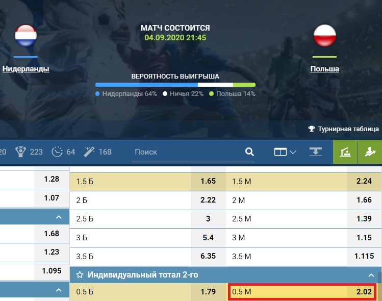 Индивидуальный тотал 2 меньше 0.5 означает пари на то, что вторая команда (спортсмен) не должна забить или совершить любое другое выбранное игровое действие за конкретное время. В этой статье мы подробно разберем, где встречается такой маркет в линии БК, и приведем примеры расчета пари.