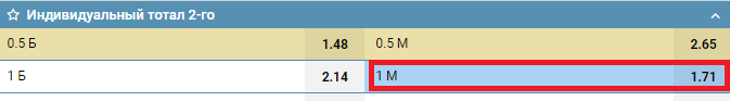 Что значит ставка ИТМ2(1) – Индивидуальный тотал 2 меньше 1
