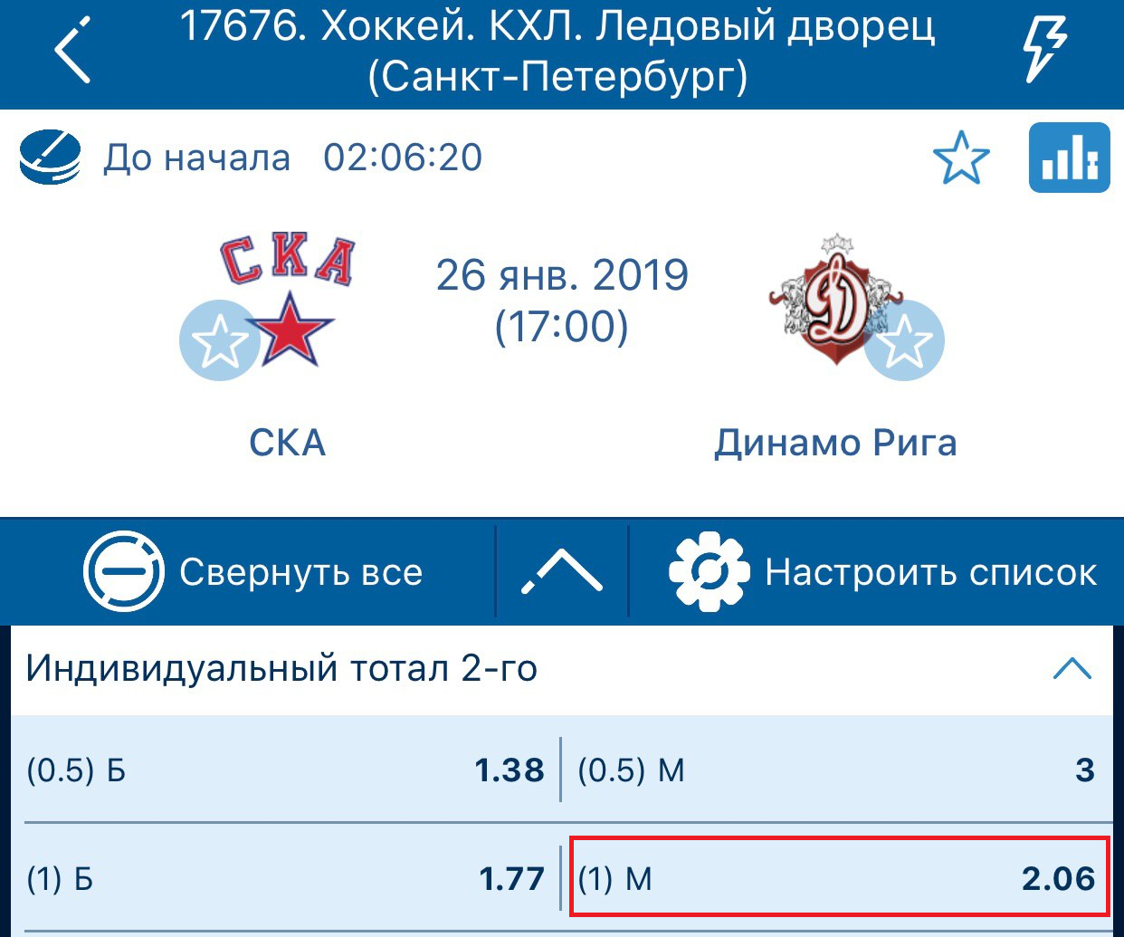 Разберем матч, в котором букмекер предлагает индивидуальный тотал 2-го (1) М. В данном случае «Динамо Рига» играет в гостях, поэтому она является второй командой.