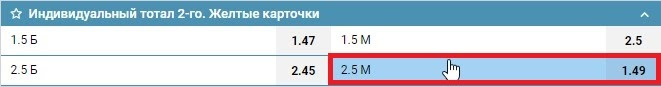 В росписи на этот же матч букмекер предлагает поставить на ИТ желтых карточек второго меньше 2.5. Коэффициент на это событие — 1.49. Ставка сыграет, если игроки сборной Сербии за весь матч получат не больше двух предупреждений. Поставив 100 рублей, можно получить 49 рублей чистого выигрыша.