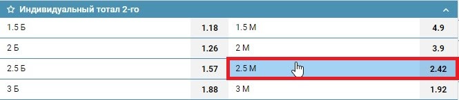 Что значит ставка ИТМ2(2.5) – Индивидуальный тотал 2 меньше 2.5