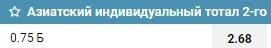 Рассмотрим игру чемпионата Италии между «Лацио» и «Ромой». На азиатский индивидуальный тотал «Ромы» больше 0.75 дается коэффициент 2.68.