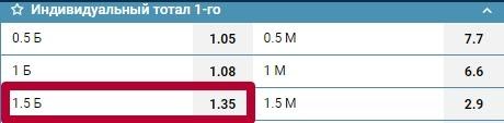 ТБ(1.5) — краткое обозначение пари в линии беттинг-компаний.