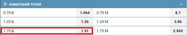 Что значит азиатский тотал больше 1.75 (ТБ 1.75)