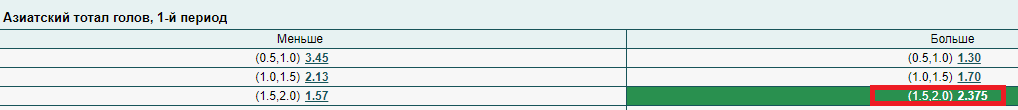 Азиатский тотал больше 1.75 в хоккее
