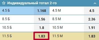 ТБ(11.5) — сокращенный идентификатор пари в линии БК. Вы можете встретить и другие обозначения: больше 11.5, ТБ(11.5) или 11.5 Б.