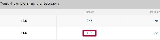 Такие пари букмекеры предлагают на число нарушений правил или угловых по итогам основного времени матча. Рассмотрим ситуацию с тоталом фолов «Барселоны» в матче с «Атлетико».