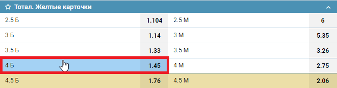 Его можно встретить в разных разделах, поэтому при заключении пари обязательно проверьте, какие игровые моменты будут учитываться — голы, карточки, удаления и т.п. Второй важный момент — время подведения итога пари (total по-английски означает сумму или итог события): это может быть основное время матча, тайм, период или четверть, определенный временной отрезок.
