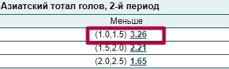 На тотал второго периода меньше (1.0, 1.5) выставлен кэф 3.26. Помещаем это событие в купон на 3000 рублей и ожидаем одного из трех исходов.