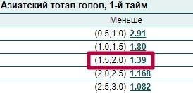 Азиатский тотал меньше 1.75 в футболе
