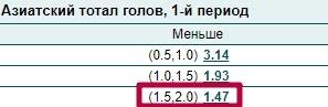 Азиатский тотал 1.75 М в хоккее