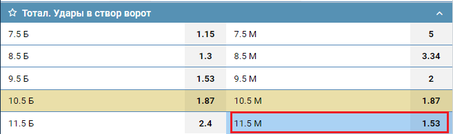 Ставка не пройдёт, если в матче будет 12 и больше ударов в створ ворот.