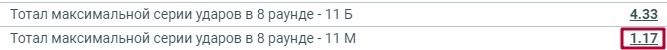 ТМ(11) — это очень вероятное явление, поэтому котировки у него невысоки. В указанном примере коэффициент 1.17.