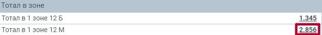 В нашем случае если пари на ТМ(12) в первой зоне выиграет, то умножит сумму ставки на 2.856.