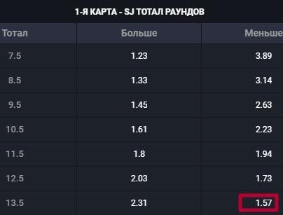 В CS:GO можно поставить на число победных раундов одной из команд на карте. ТМ(13.5) указывается почти всегда.