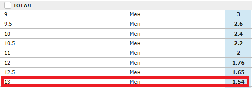 Что значит Тотал 13 меньше (ТМ 13)
