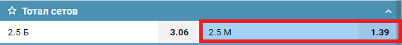 М — сокращение от «меньше» указывает на то, что ставка выиграет, когда событий меньше определенного числа.