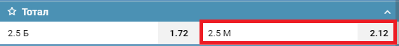 Ставка ТМ(2.5) выигрывает, если в течение матча, тайма и т.п. будет забито (набрано) 2 и меньше голов (очков). Три гола (очка) и больше — и ставка сгорает.