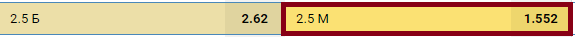 Разберем пример, где мы взяли 2.5 М по сетам.