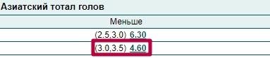 Аббревиатура данного маркета бывает и другой: тотал меньше 3.25, азиатский тотал 3.25 М, тотал 3.25 М, ТМ(3.5, 3), ТМ(3.25).