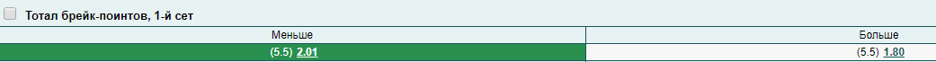 Наша ставка — на количество брейк-пойнтов в первом сете. Это означает, что спортсмены не должны взять больше пяти подач соперника в первом сете.