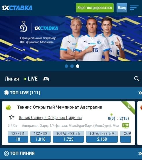 На главной странице мобильной версии кнопка «Кибер» находилась рядом с блоками «Линия» и LIVE. Таким образом, букмекер облегчал игрокам поиск ставок на киберспорт.