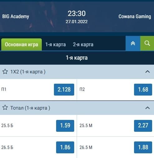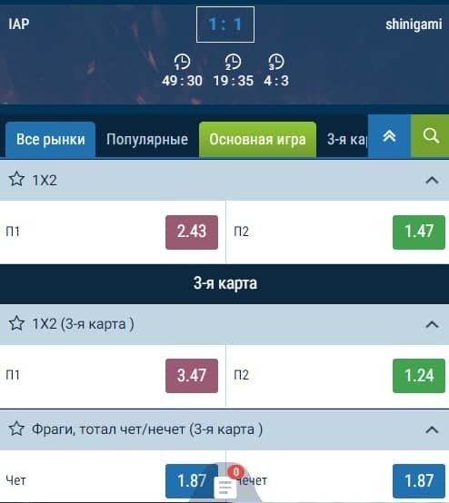 — Ставки на продолжительность карты по минутам будут рассчитываться с учетом секунд. Если вы ставили на исход «Продолжительность карты 27,5 больше», ваша ставка выиграет, если карта закончится после 27:30 (т.е. 27:35, 27:44 и так далее). Если карта закончилась в 27:15, то такая ставка будет рассчитана проигрышем. Если игра закончилась ровно в 27:30, ставка будет рассчитана с коэффициентом 1.