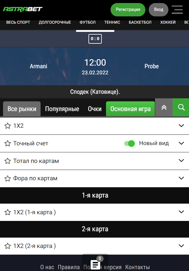 Одна из двух главных дисциплин у БК Astrabet может похвастаться разнообразием различных маркетов.