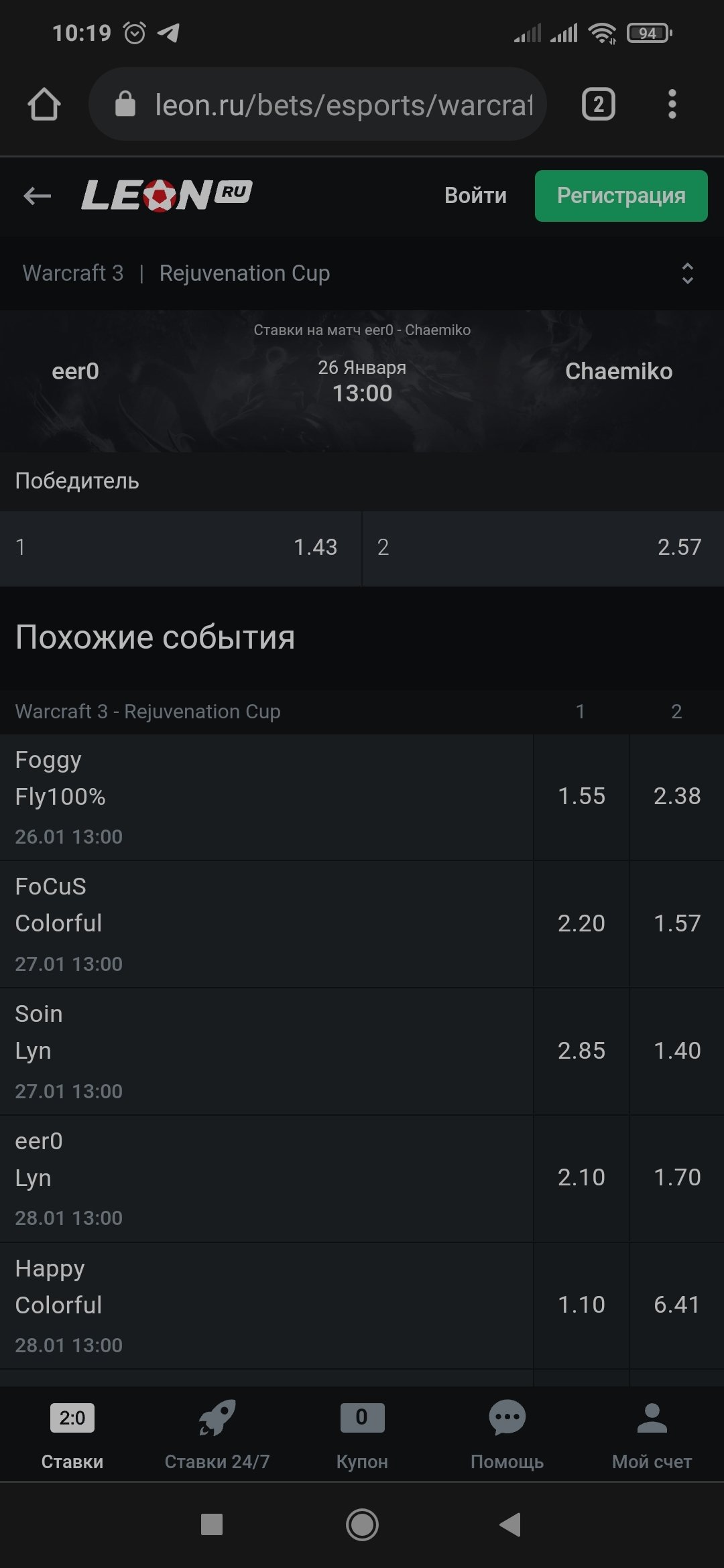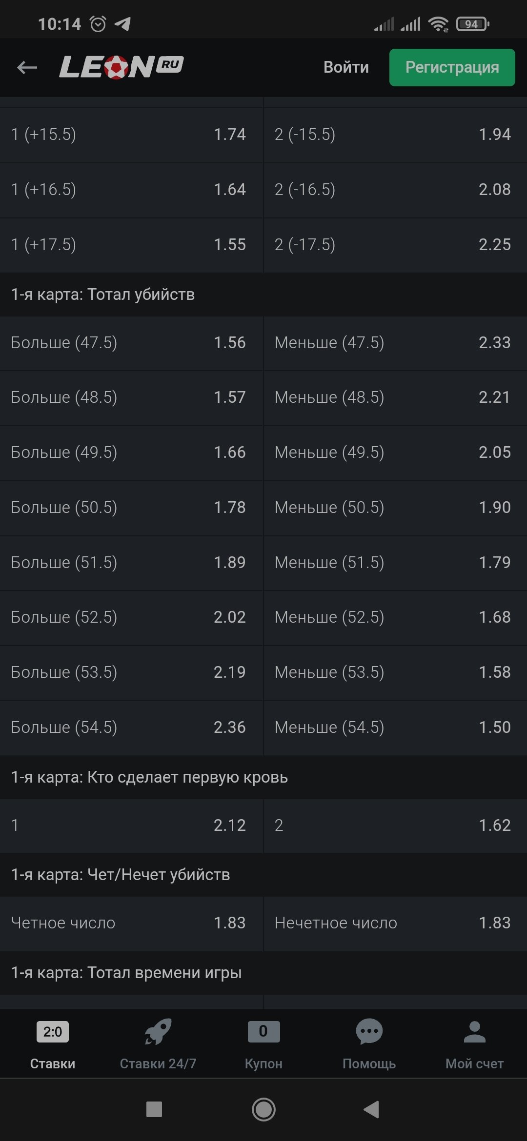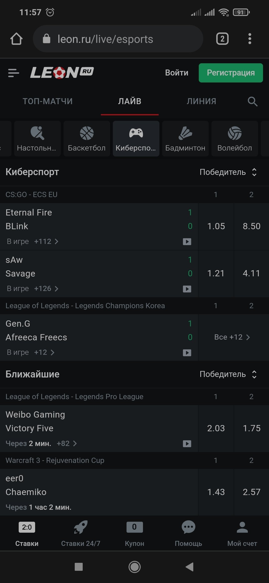 В остальных дисциплинах Rocket League, Halo, Starcraft 2, Valorant и Warcraft 3, FIFA, NBA 2K и NHL. БК «Леон» предлагает «джентльменский» набор: П1П2, тотал, фора, иногда встречаются ставки на точный счёт и победителя карт. На мелких турнирах и вовсе есть только ставка на победителя.