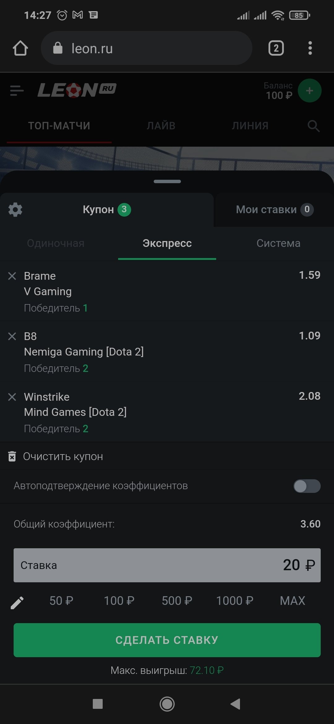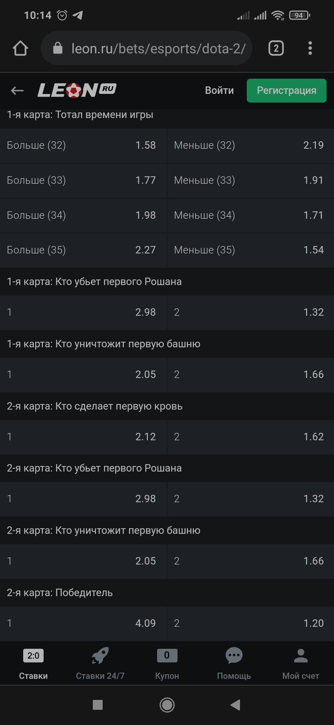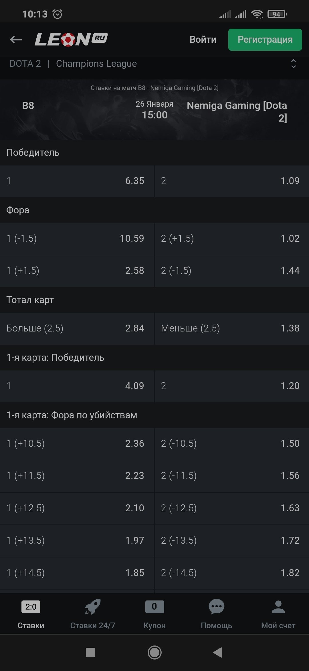 У БК «Леон» большой разбег по марже, но в среднем она лучше, чем у большинства конкурентов из киберспортивных букмекеров — 5-8%.