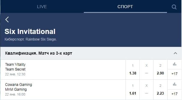 Мало киберспортивных дисциплин в прематче и режиме Live (5-6).