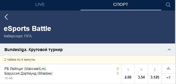 В live-режиме количество маркетов на киберспорт достигает 125.