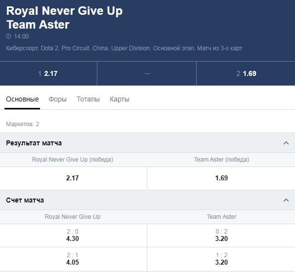 В live-режиме количество маркетов на киберспорт достигает 125.