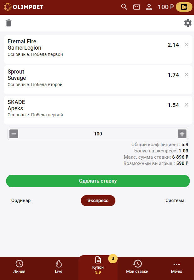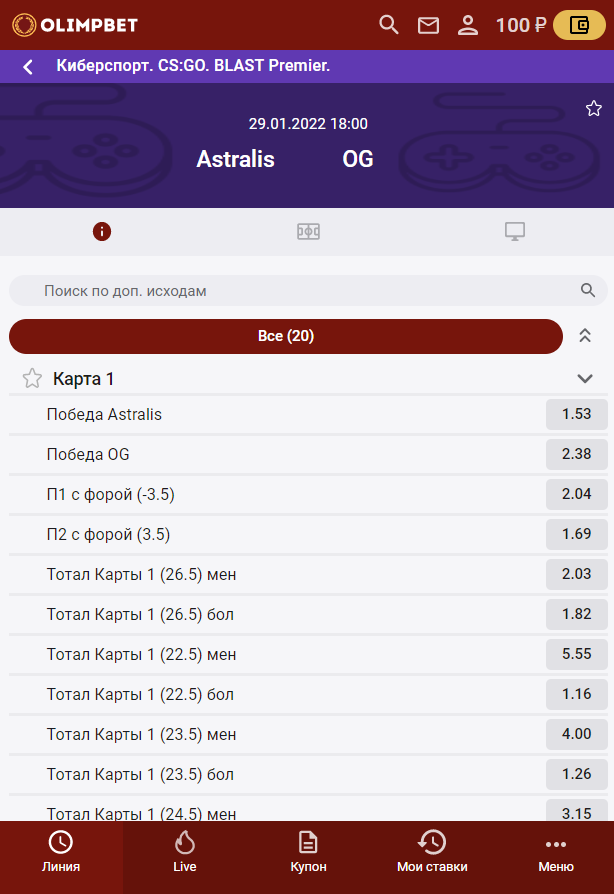 Как сделать ставку на киберспорт в БК «Олимп»
