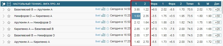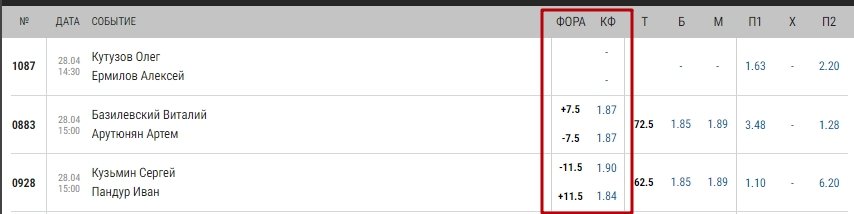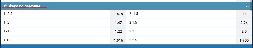 Ставки на фору по набранным очкам в настольном теннисе можно часто встретить в основной линии матча.