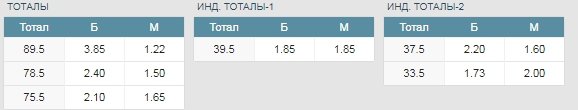 Ставки на индивидуальные тоталы часто соседствуют в росписи со ставками на общий тотал. Обычно шаг ставки по ИТ меньше, чем по общему тоталу.