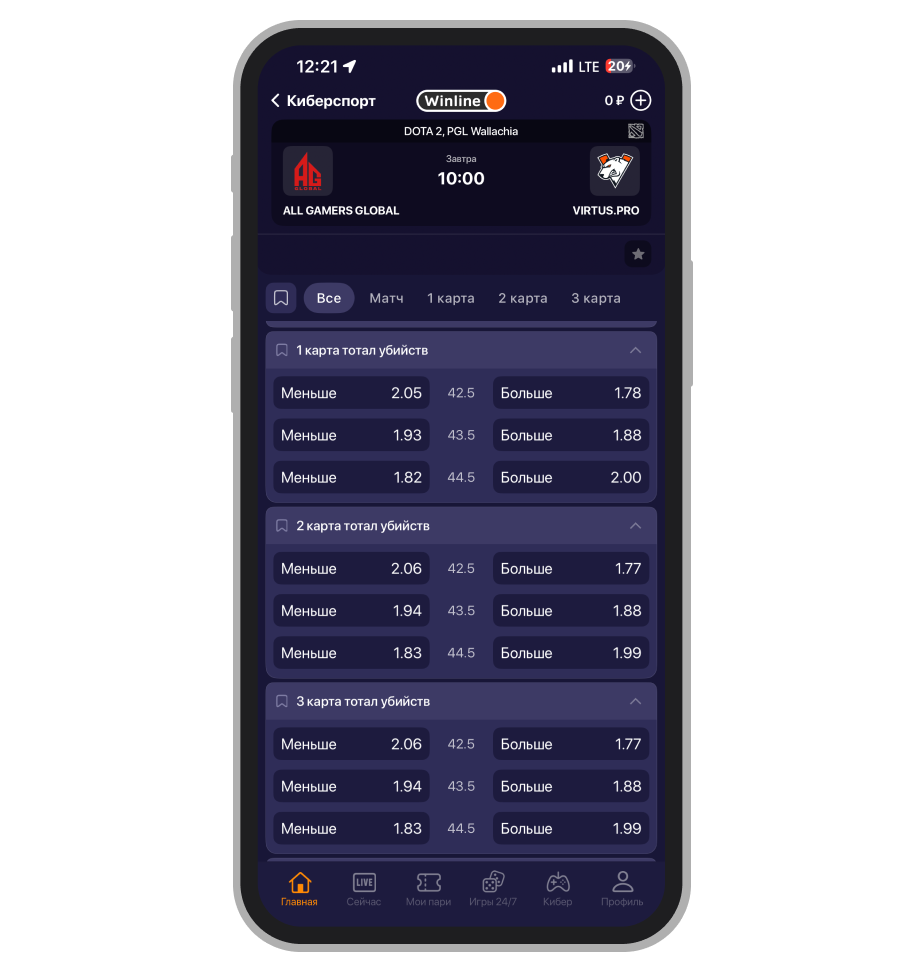 Ставки на тотал — это прогноз на то, превысит ли конкретный показатель (например, количество убийств или продолжительность карты) заданную линию. В Dota 2 тоталы могут варьироваться от общего числа киллов до количества уничтоженных Рошанов или продолжительности карты.