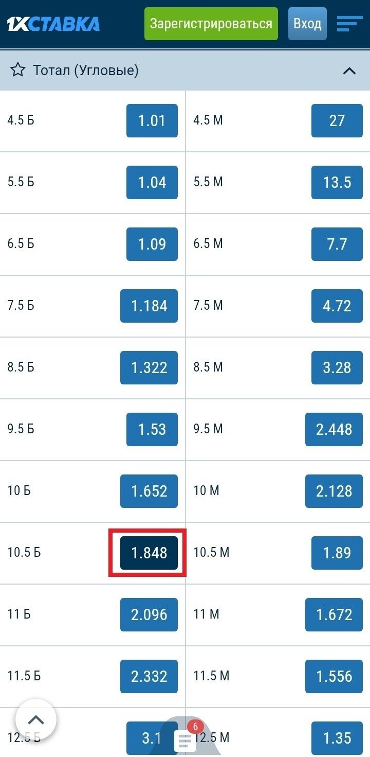 Предположим, встречаются две равные команды, и вы не знаете, на какой исход поставить, или сомневаетесь, сколько будет забито мячей. Но обе команды атакуют через фланги и статистически в матчах этих команд подаётся много угловых. Тогда можно выбрать ставку на тотал количества угловых в этой встрече.