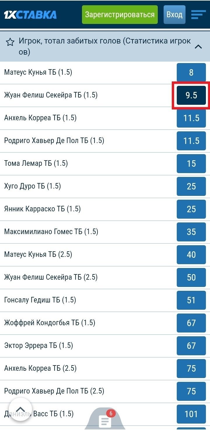 Либо вы хотите поставить на конкретного игрока, так как он забивает много голов в последних матчах. Тогда ставите на тотал голов этого игрока. Например, ТБ 1,5 и тогда, при условии, если он забьёт от двух мячей и более, — наша ставка сыграла.